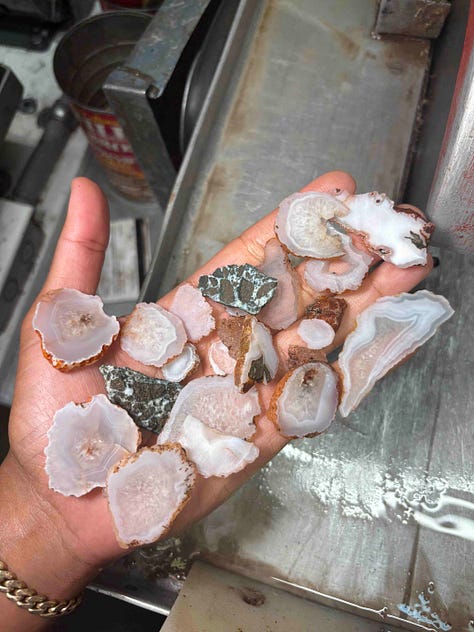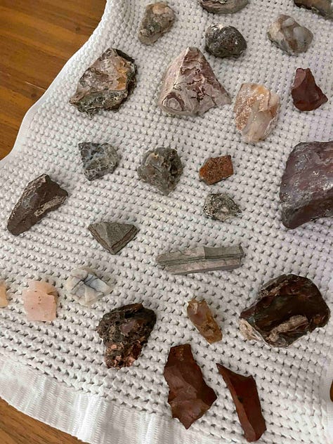It feels pretty obvious to me why rockhounding found me again when it did (besides the fact that I’m an earth sign). In my life as a self-fixer, play for play’s sake felt like a waste. I’d only read The Body Keeps the Score three and a half times, so I had no business playing. I had neurons to rewire! Trauma to vanquish! My life was driven by a panicked belief that only through “self-improvement” would I get to the life I dreamed of (mainly, being loved/in love). So, allowing myself the space to do stuff for fun was, well… radical for me. It meant coming back to a childlike version of myself that spent the bulk of her days in pursuit of small, moment by moment pleasures, rather than chasing some vague better self. A version of myself that innately knew living a good life didn’t, couldn’t involve trying so hard. And it meant giving up—not on myself, but on the idea that being enough existed in some distant future. It was here, now.